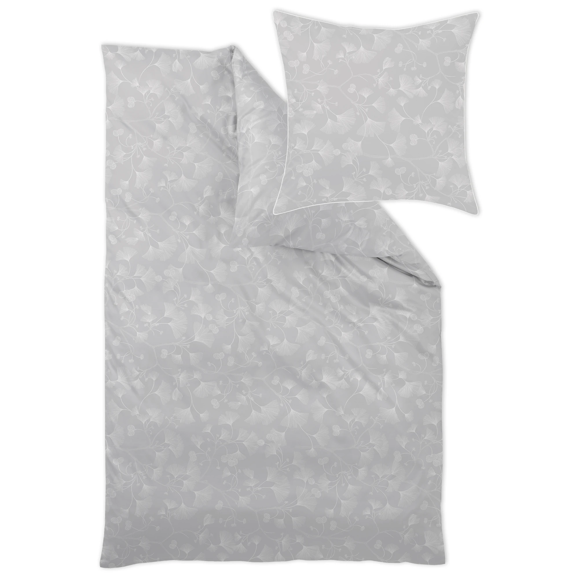 Curt Bauer Bettwäsche AIKO – luxuriöser Mako-Brokat-Damast aus 100% Baumwolle. Buntgewebt, merzerisiert und bügelleicht, mit fein gezeichnetem Ginkgo-Dessin und elegant paspelierten Kissen. Für stilvollen Schlafkomfort auf höchstem Niveau.