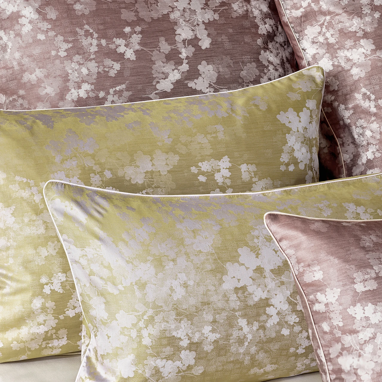 Curt Bauer Bettwäsche FLORA – edler Mako-Brokat-Damast aus 100% Baumwolle. Buntgewebt, merzerisiert und bügelleicht, mit fein schattierter Blütenstruktur und aufwendig paspelierten Kissen. Für alle, die Luxus und Komfort im Schlafzimmer schätzen.