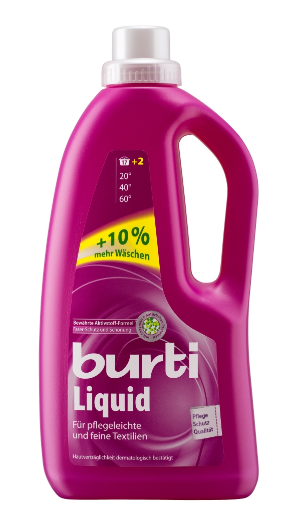 WaschenBitte verwenden Sie ausschließlich Flüssigwaschmittel für die Pflege Ihrer Wäsche, welche ohne optische Aufheller und ohne Bleichmittel auskommen. Bei der Verwendung von Pulverwaschmitteln besteht die Gefahr, dass Waschmittelreste in der Waschmaschine zurückbleiben. Verwenden Sie beispielsweise ein Pulver mit Bleichmittel, kann es passieren, dass diese Rückstände bei dem nächsten Waschgang mit bunter Bettwäsche diese punktuell ausbleichen. Flüssigwaschmittel hingegen bildet, direkt in die Trommel gegeben, solche Rückstände nicht. Wir empfehlen nach Rücksprache mit unseren Herstellern das Flüssigwaschmittel burti Liquid, welches Sie in jedem gut sortieren Drogerie- bzw. Supermarkt erwerben können: